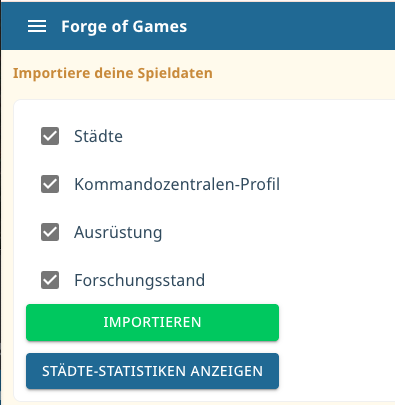 - Daten wurden erfolgreich importiert. Öffne den Stadtplaner oder die Kommandozentrale, um sie zu sehen.