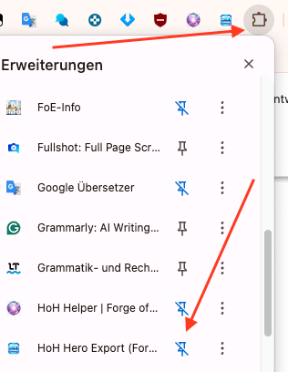 - Klickt die Erweiterung an (Pfeil oben)