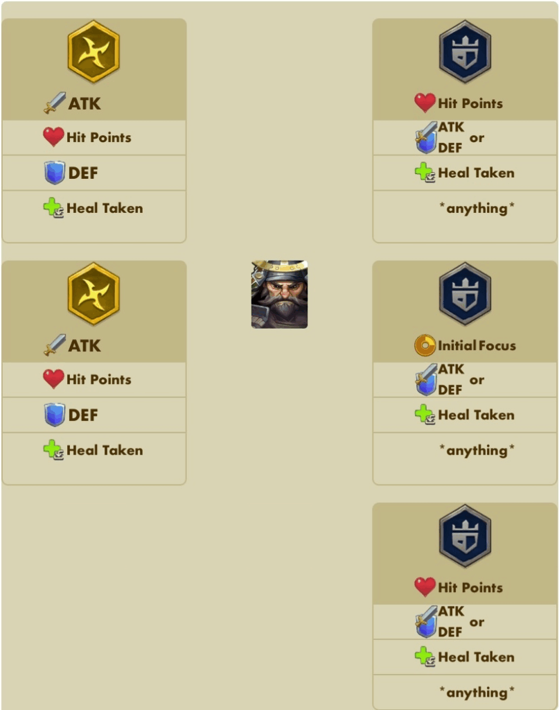 Hier wird primär defensive Stats empfohlen, dabei ist der Held ja offensichtlich primär eher auf Angriff aus. „Eine defensive Ausrichtung wie hier empfohlen ist zwar möglich, offensive Ausrichtung passt jedoch weit besser zur Stärke des Helden“